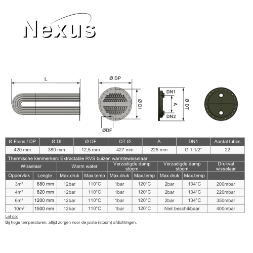 De Nexus™ BF serie boilers zijn uitgerust met één of meer extractable (uitwisselbare) tube warmtewisselaars leverbaar en zijn zeer geschikt voor toepassingen met hoge druk en temperatuur om de warmte uit te wisselen van het ene medium naar het andere. De extractable wisselaar is gemaakt van een hoogwaardig roestvrij staal. En voor een efficiënte warmteoverdracht wordt een groot oppervlak gebruikt.