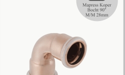 Mapress Koper 601. Bocht 90°, persfitting met 2 aansluitingen, koper