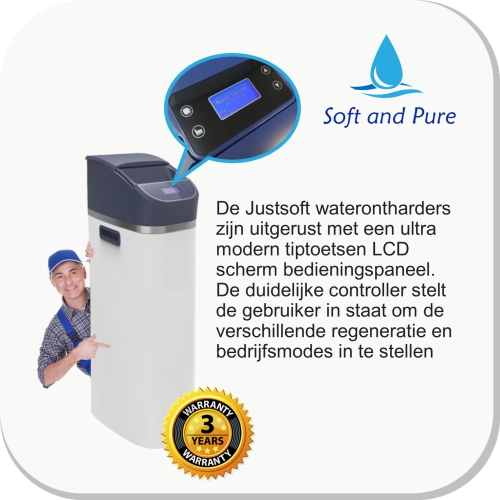 Veel van het water dat u gebruikt bevat sporen van calcium, ijzer en magnesium. Water met deze metalen staat bekend als "hard water", de Justsoft waterontharder helpt u deze metalen te verwijderen uit het water. Een waterontharder oftewel een waterontkalker kan een goede investering zijn. Deze machines filteren het water met harskorrels die calcium en magnesium opnemen uit het water. De harskorrels worden vervolgens schoongespoeld met zout.